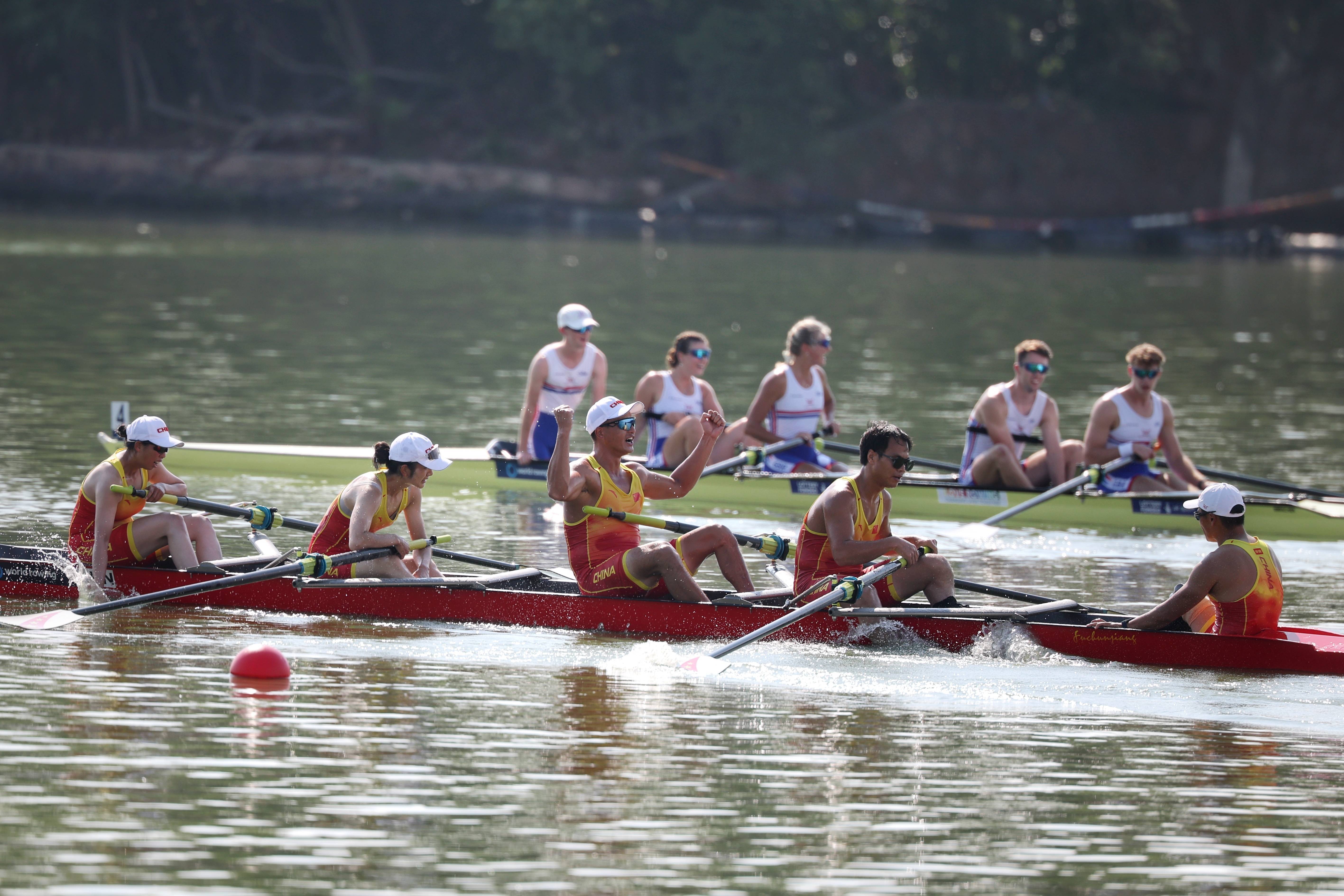 王熙熙/曾万彬/吴云龙/蒋灵涛/余立组合(前)在PR3级夹杂四东谈主单桨有舵手时势比赛中。新华社发(王馨雨 摄)这五东谈主自2018年组队以来,东谈主员永久莫得更动。被问到此次取得成绩冲突的窍门时,吴云龙快嘴快舌的词是“团队”。“不错看到,咱们的身高有差距,须眉跟女子的力量亦然不同的,是以要在历练中多方面合作,永劫刻的磨合。”吴云龙说,“包括志愿者此次也给了咱们许多匡助,场面也很好,赢得奖牌是整个东谈主兼听则明的效果。”